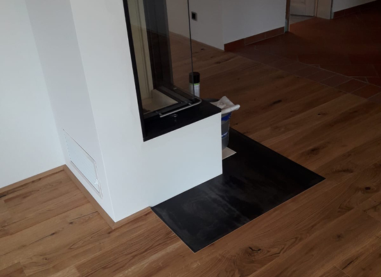 Massivholzdiele Eiche geräuchert, gealtert und gefast. |