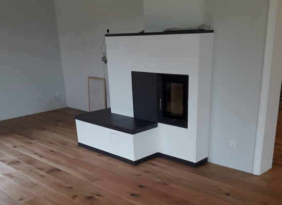 Massivholzdiele Eiche weiß geölt, gebürstet und gefast mit Zwischenfries. |