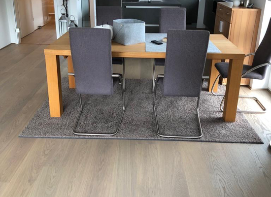 Weitzer Landhausdiele, Eiche Auster, lebhaft, stark gebürstet. |