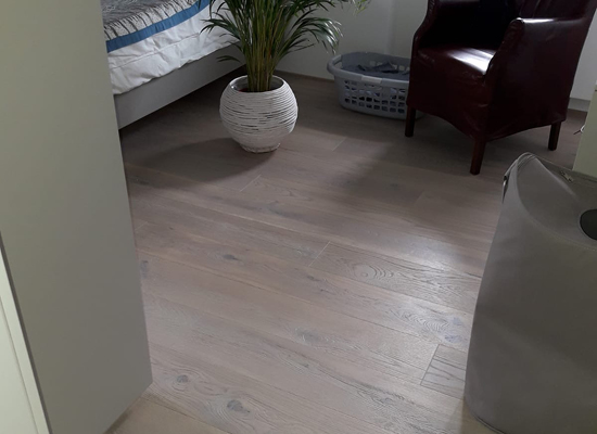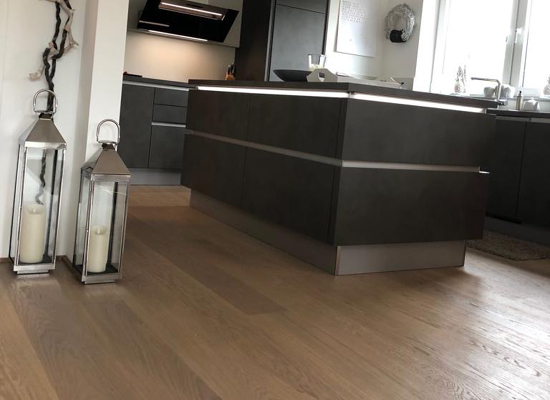 Weitzer Landhausdiele, Eiche Auster, lebhaft, stark gebürstet. |